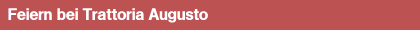 Hochzeit, Geburtstag, Taufe oder Betriebsfeier - "Trattoria Augusto" ist der ideale Rahmen für festliche Anlässe. Der Besuch bei uns macht Ihre Feier unvergeßlich. Auf Wunsch erhalten Sie einen passenden Menüvorschlag für Ihre Feier. Sagen Sie uns, was Sie gerne anbieten möchten oder nennen Sie uns Ihre Preisvorstellung - wir machen Ihnen Vorschläge für ein echt italienisches Menü.